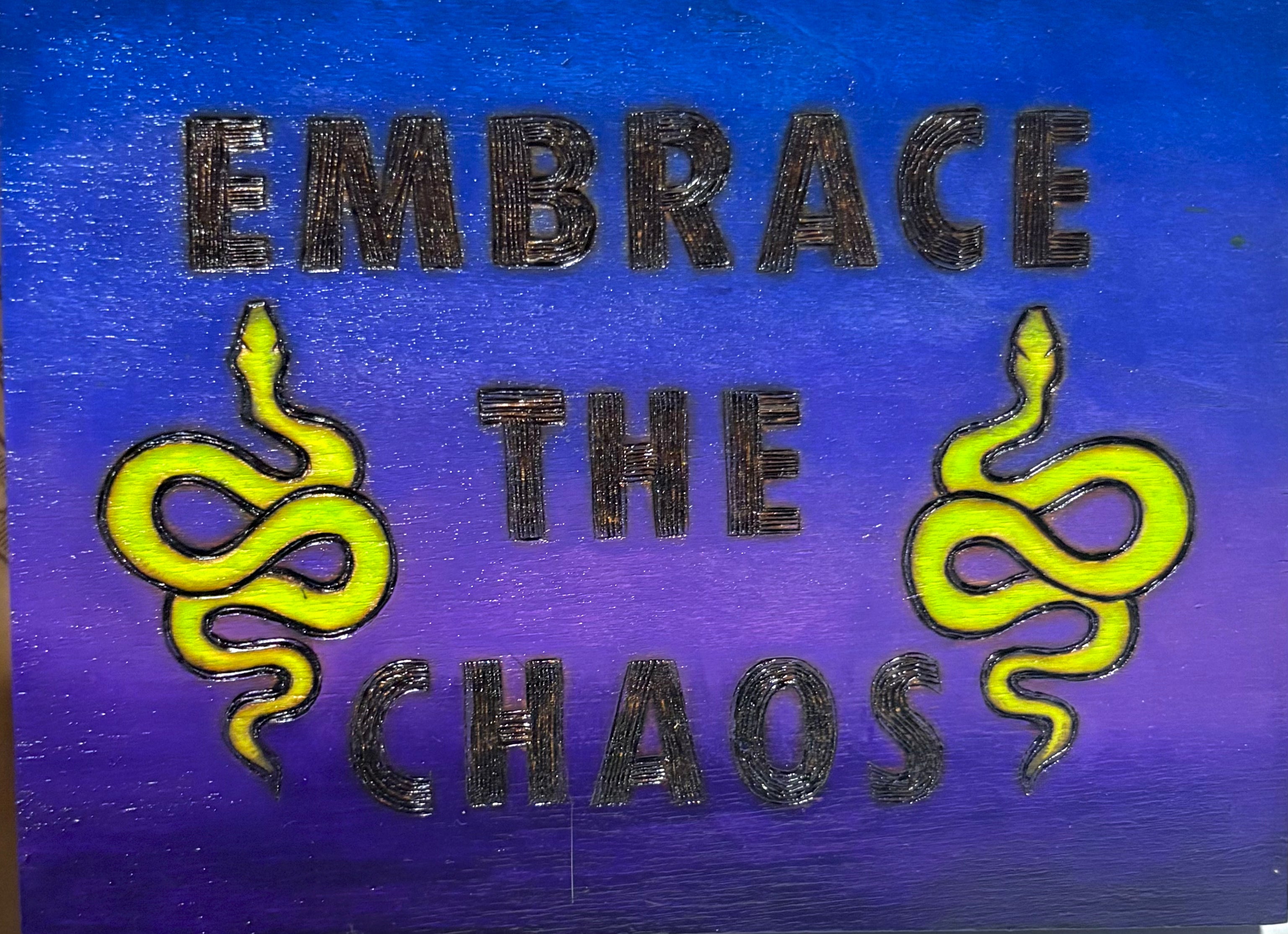 'Embrace The Chaos' Wood Hanging Plaque by Oklahoma Artist Impermanent State.