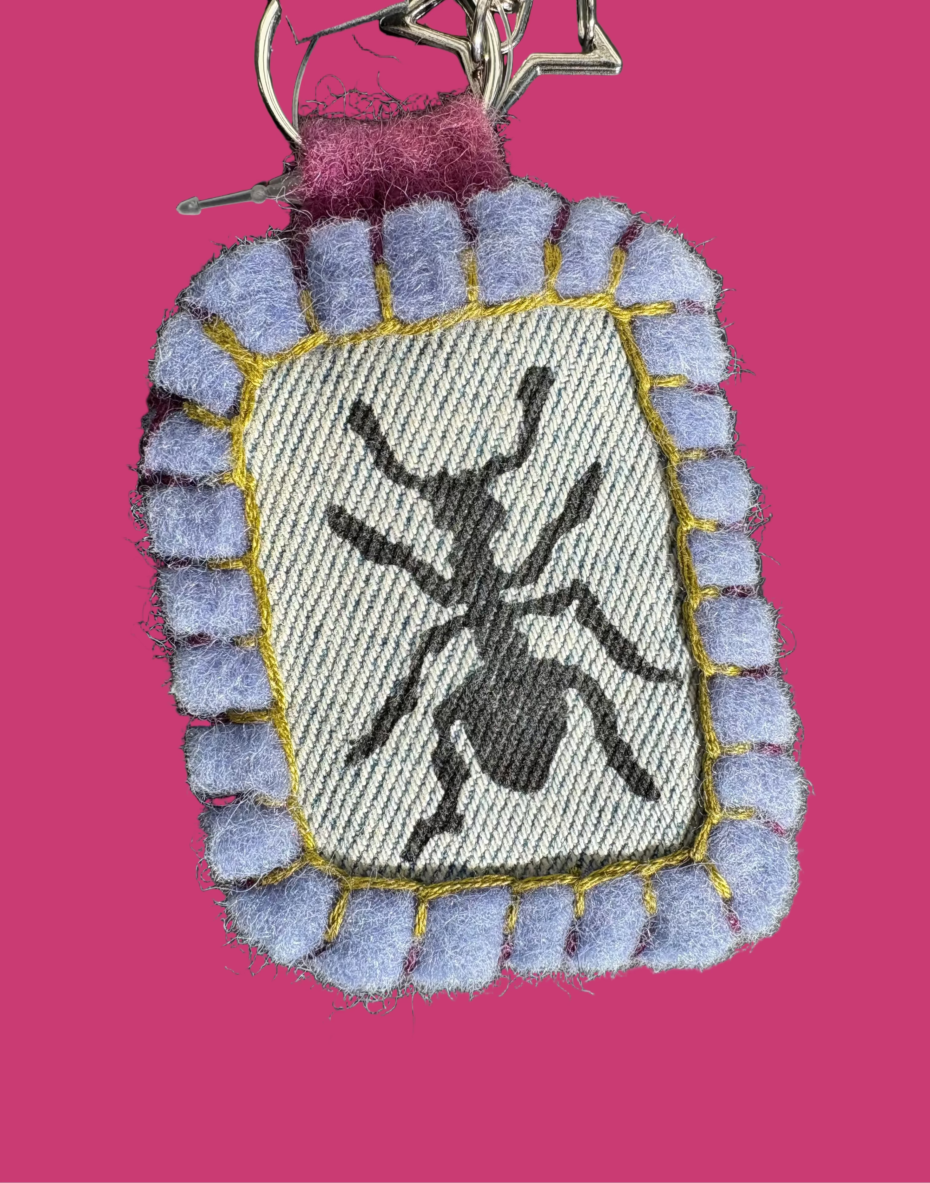 Embroidered Ant Keychain created by Oklahoma Artist Snotlobster.